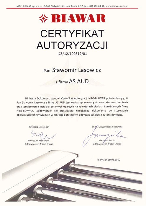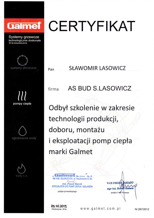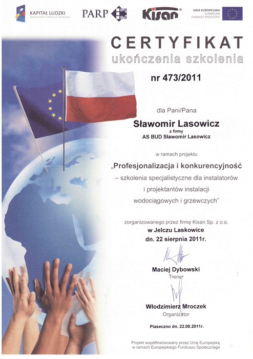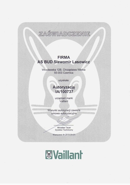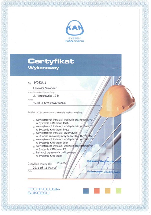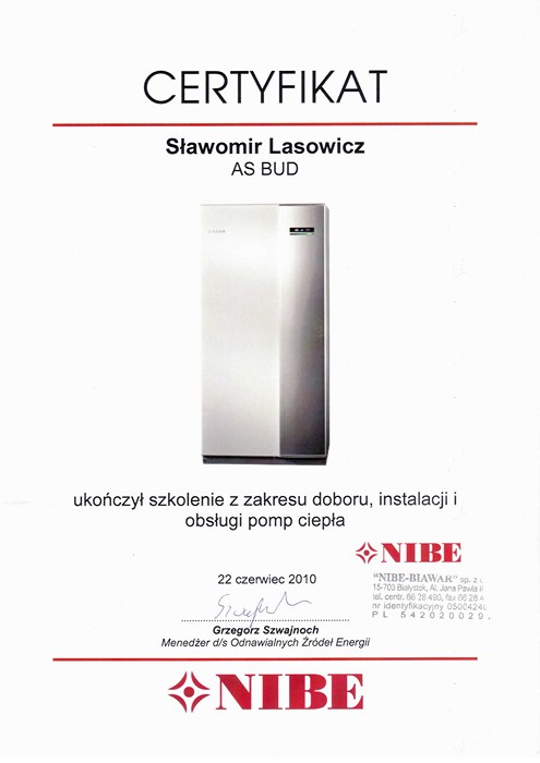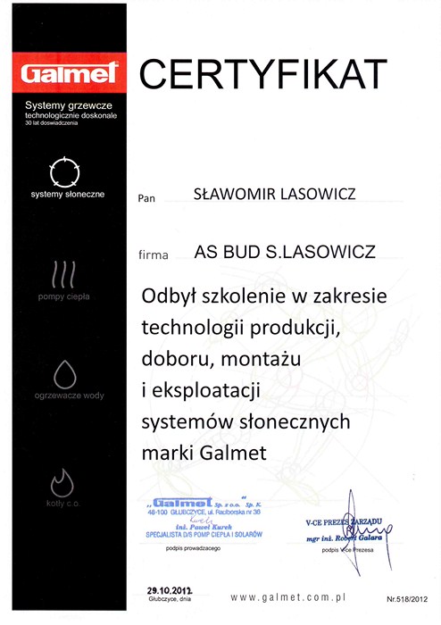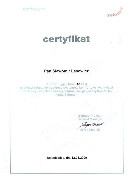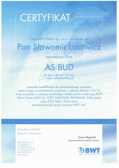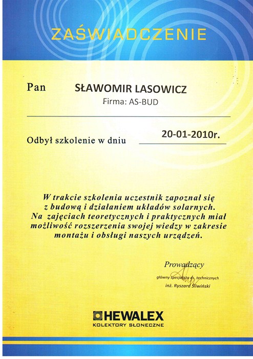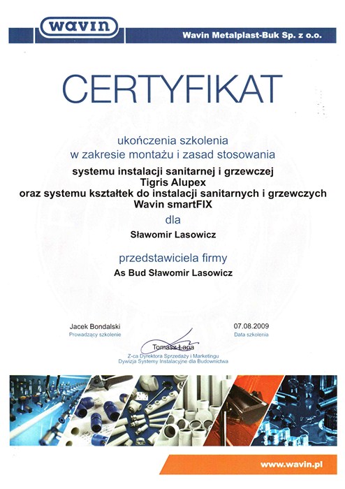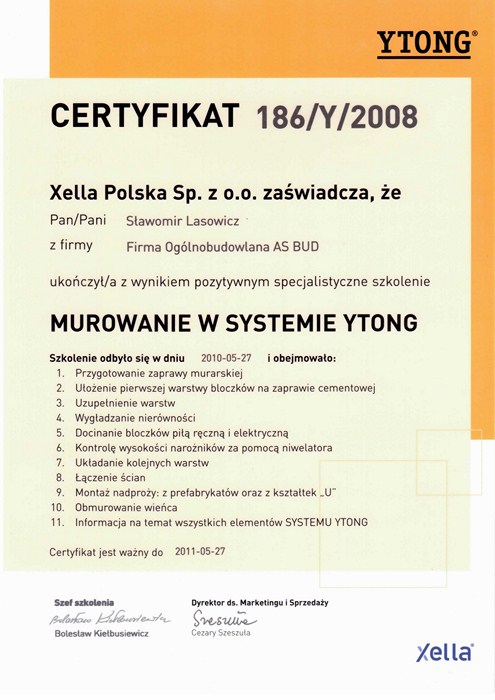 Certyfikaty firmy budowlanej AS BUD - Wrocław